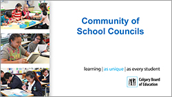 The Community of School Councils (COSC) is comprised of school council chairs or designates from all CBE schools, members of the Board of Trustees and representatives from CBE administration. The purpose of COSC is to allow for effective interaction between the CBE and its school councils. Through COSC, the CBE can focus on effective, two-way dialogue with our school councils about school and student learning issues.