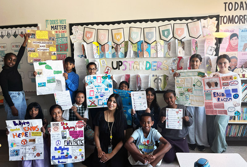 Throughout the year, her class explored the Seven Sacred Teachings, celebrated Black History and Women’s History Months, and connected those lessons to everyday acts of justice and kindness. The result was a student-driven project inspired by the Canadian Museum for Human Rights’ “Be an Upstander” initiative.