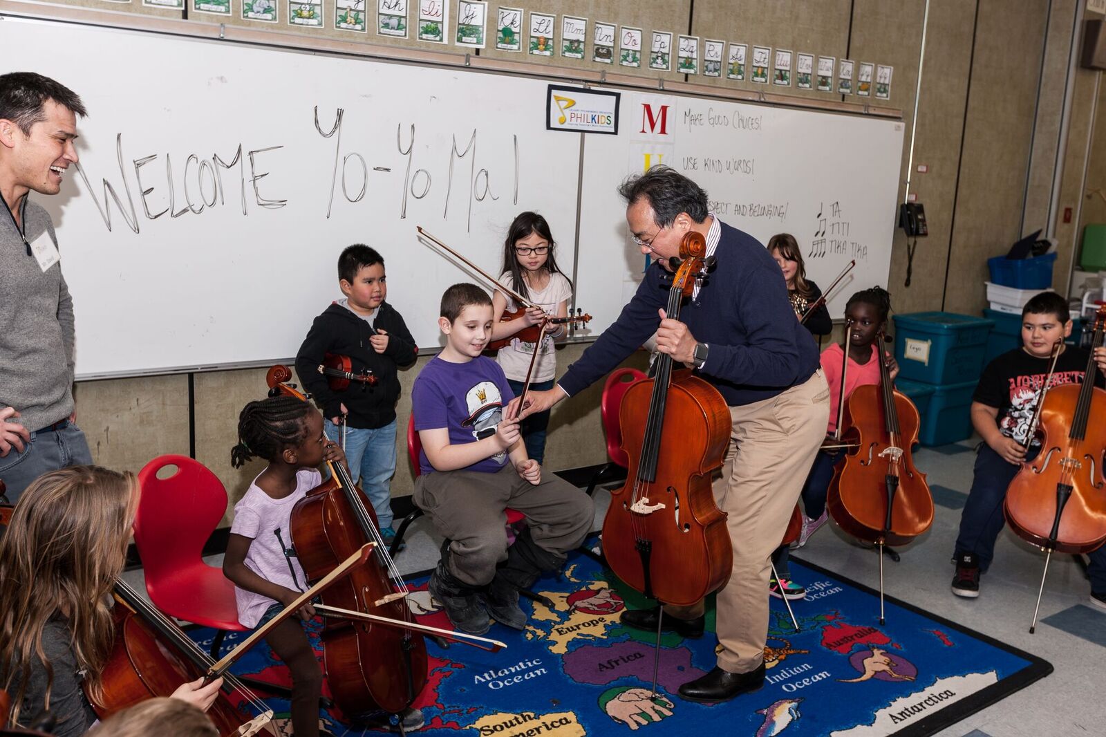 Mr. Ma listened to a cello performance by a number of children before performing to the group and said of his experience, “It’s always wonderful to walk into a room where you see children are engaged and curious. I can see the long-term effects of what the teachers, staff, and musicians have created. They have created a space for these students where their imagination and curiosity for the world is supported and encouraged.”