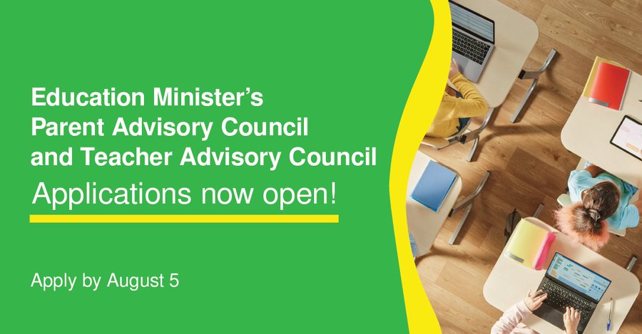 Alberta Education is also seeking members for the 2022-23 Minister's Teacher Advisory Council. For more information, please visit alberta.ca/ministers-teacher-advisory-council.aspx .