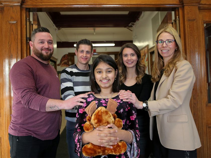 Maryam Basharat, 11, with the teaching staff at Balmoral School in Calgary, on Friday December 7, 2018, who helped save her life. they are from left Bryan Allen, Thomas Guenther, Jillian Wright and principal Liana Appelt. Leah Hennel/Postmedia