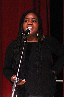 Hosted by Western Canada’s own Courtney W., the performers, Priscille Bukasa, Amanda Okafor, Zaire Sealy, and Patrick Clifton were warmly welcomed by the students who clapped, cheered, and snapped throughout the performances. The experience of spoken word requires some form of interaction, and the initial hesitance from the crowd to interact slowly dissipated as the students sank into the voices and stories of the artists. Twice Patrick Clifton greeted the students on the microphone with two songs that explored the strength of music as a cathartic outlet. Amanda Okafor explored her identity as part of the African Diaspora. She warmly explored the pain of not feeling welcomed in a society that is still grappling with the nature of Canadian identity. Zaire Sealy approached the stage with a warmth of voice and presence where he challenged the audience to filter through complex stories of finding his own faith and its relation to how he views his place in the world. Priscille Bukasa stood on stage explaining to the crowd the nerves that surged through her in that moment. However, when she performed and the power of her voice reverberated across the audience, the students witnessed confidence in one of its most pure forms in her piece “16 Shots.” Each of these artists used the stage to present as authentic an image of self as they were able. The strength of this experience is not in the transmission of black history, but rather in the complex nature of these performances and the performers conveying the depth of their understanding of their own culture and identity.