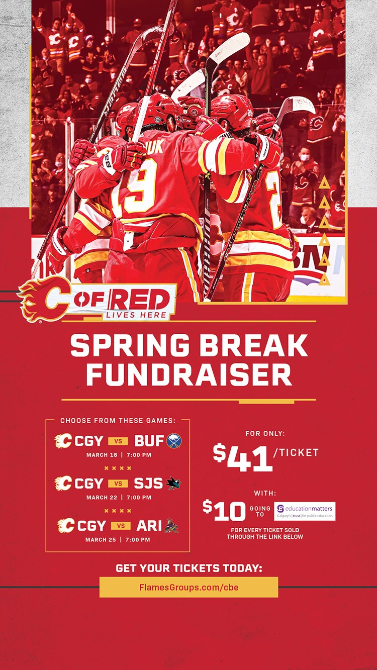 Students, staff, and their families can enjoy a Flames game or a Roughnecks Game during spring break and help raise funds that support CBE students and schools.