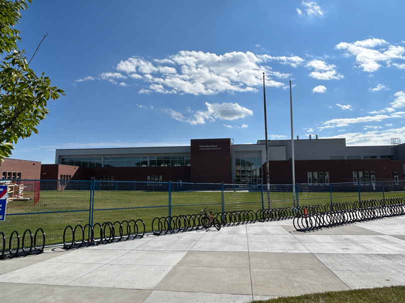 Prairie Sky School was built by Alberta Infrastructure and Jen-Col Construction. The school building provides a large and diverse range of classrooms that cater to students from kindergarten to Grade 9. With bright classrooms, a large learning commons space, culinary arts classrooms, a wood shop, a large gymnasium and more, the school provides great spaces for all students to learn in and enjoy.