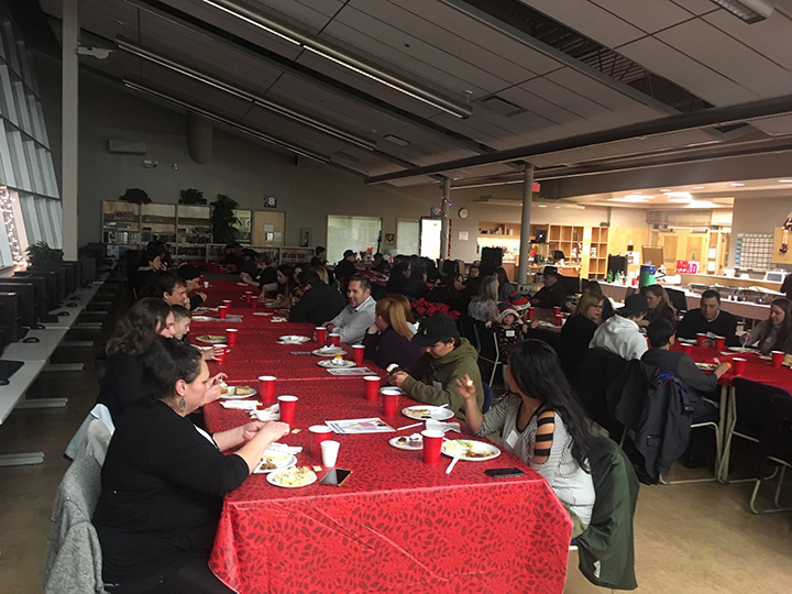 With an appearance from Santa himself, he and Mrs. Claus ensured all left smiling with a photo to remember the evening. Generously supported by members of the Boys & Girls Clubs of Calgary- Iiyika’kimaat Program, Pathways, the City of Calgary Youth Employment Centre, Métis Calgary Family Services, the Aboriginal Friendship Centre, and many dedicated Centennial High School staff, students and families left with a feeling of warmth of the season, as well as a full belly.
