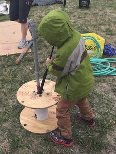 Occupational Therapist, Erin Novak, first made the connection with representatives from the City; she had been working closely with two teachers to facilitate learning through play all year, and the time was right for their loose parts play to extend to larger-scale outdoor exploration. Prior to the Adventure Play day, City staff hosted an after school in-service with CVS staff. They described the process of creating dynamic spaces where children can create, explore, imagine and learn, and they answered questions from CVS staff about both pragmatics and safety. City staff joined CVS’ first day of play and learning, providing support and guidance for both students and staff.