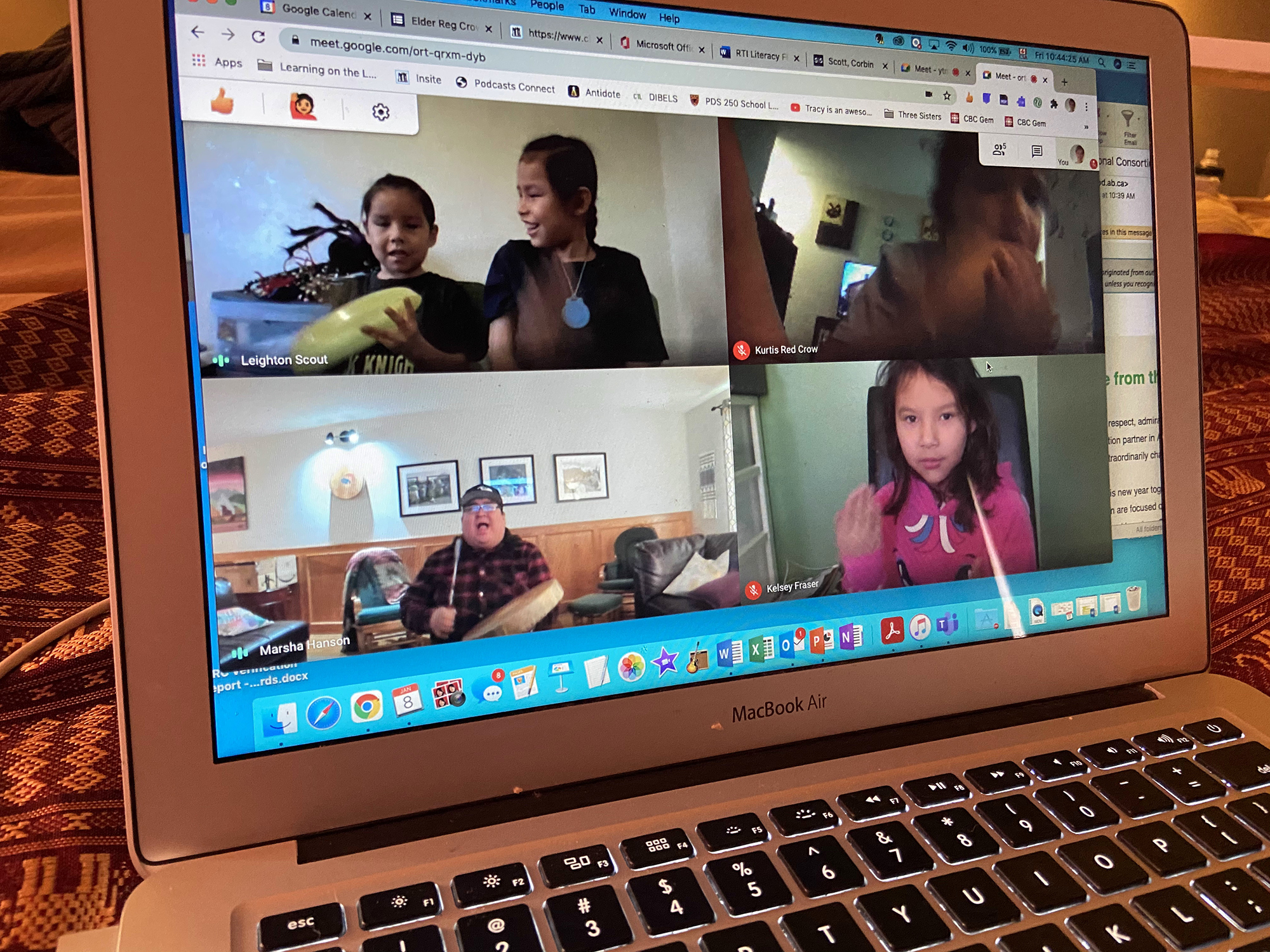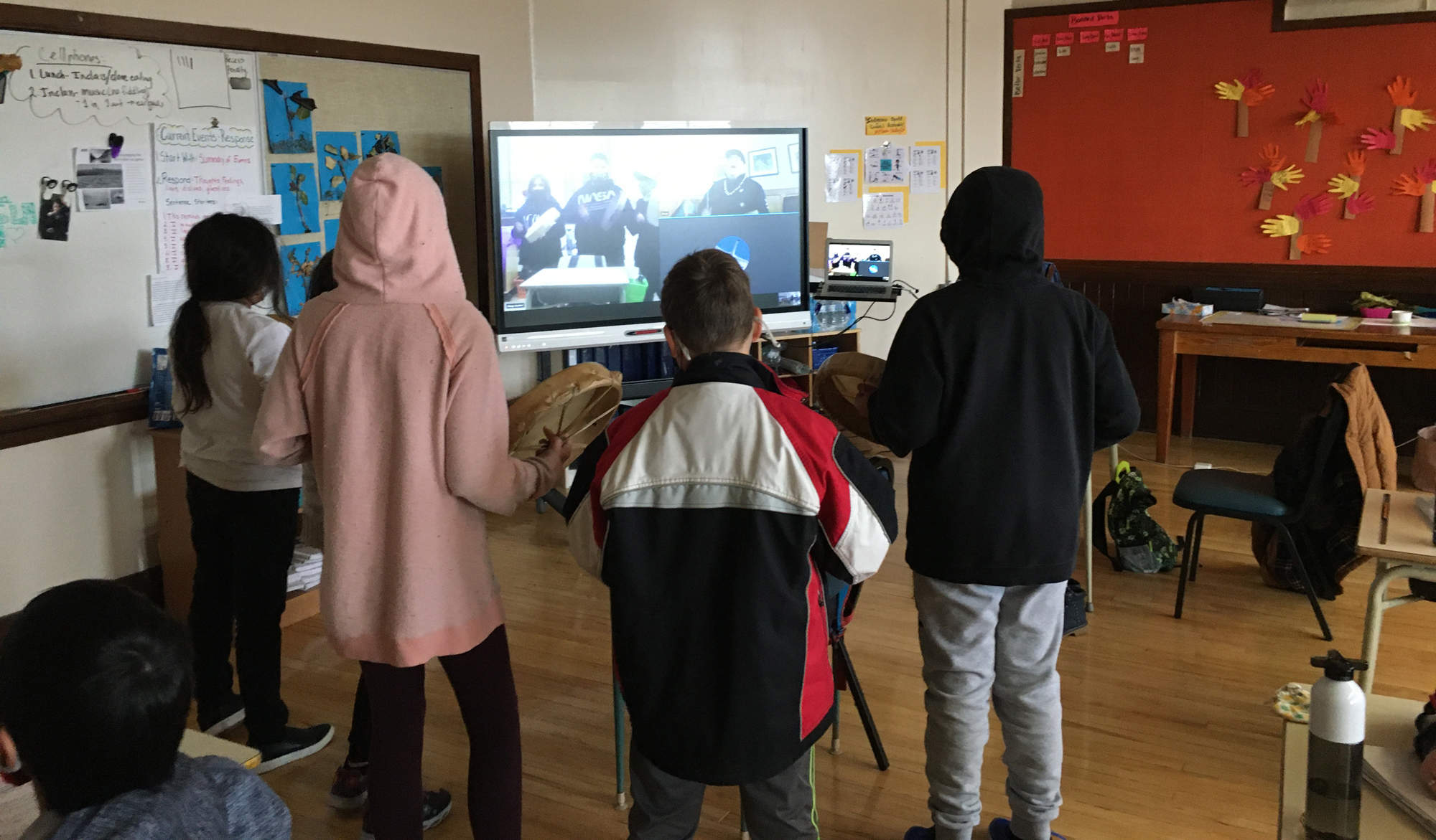 Knowledge Keeper Darcy TurningRobe reminds students weekly during drum residency teachings that they are leaders, that they are connected to both the past and the future, and that they are connected to the land. The stories, oral text, of Ninastiko, the origins of the drum, and dance, passed from one knowledge keeper to the knowledge keepers of the future, support students in connecting the land and to who they are.
