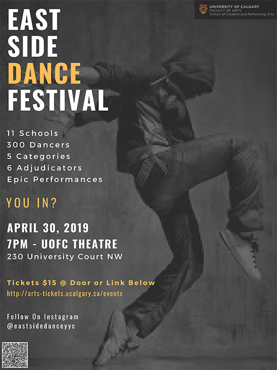 The 8th Annual Eastside Dance Festival will bring together more than 300 students from 11 schools from the Calgary Board of Education and the Calgary Catholic School District. The event was created to foster positive relationships and community among potentially at-risk youth and to provide dance opportunities for underprivileged students in the city of Calgary.