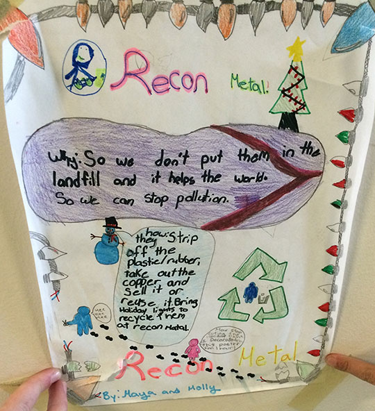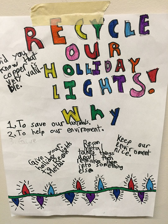 Funds received from the donation of the lights will be donated to charities of the students' choosing, as well as to Star EcoWorks. This project is an authentic example of how students can create social impact in their community from K-12, students learn HOW to recycle the lights and WHY. The program has partnered with a scrap metal yard, which will provide Rubbermaid totes to collect the lights, as well as pick up service at the end of January, for easy organization.