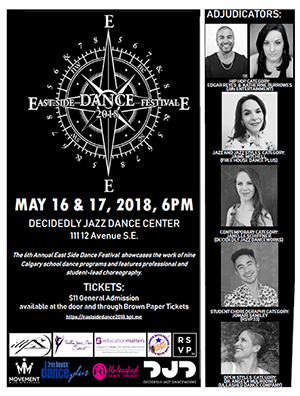 The festival takes place on Wednesday, May 16 and Thursday, May 17 at Decidedly Jazz Danceworks, 111 – 12 Ave SE and starts at 6 PM each day.