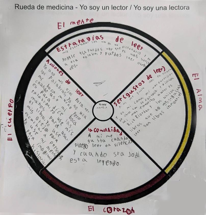 Eugene Coste School, one of six Spanish Bilingual elementary schools within the CBE, we are working to improve student achievement in reading in both English and Spanish. In response to a recent school-wide provocation, Spanish Intensive Weeks, students in señora Schmidt’s Grade 4/5 class worked to better understand their identities as bilingual readers through their “Soy un Lector”/”I am a Reader” project. Working through the lens of bilingual literacy, students explored the multiple dimensions of the Holistic Lifelong Learning Framework (alma/spirit, corazon/heart, cuerpo/body, and mente/mind) to define their whole selves as readers.