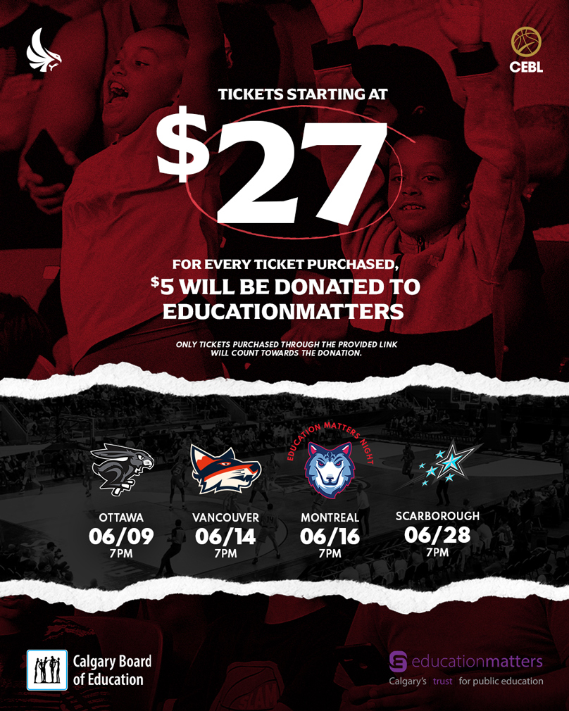 At select games during the month of June, the Calgary Surge will donate $5 from every ticket to support EducationMatters! Fueling a brighter future for CBE students. Purchase your tickets online.