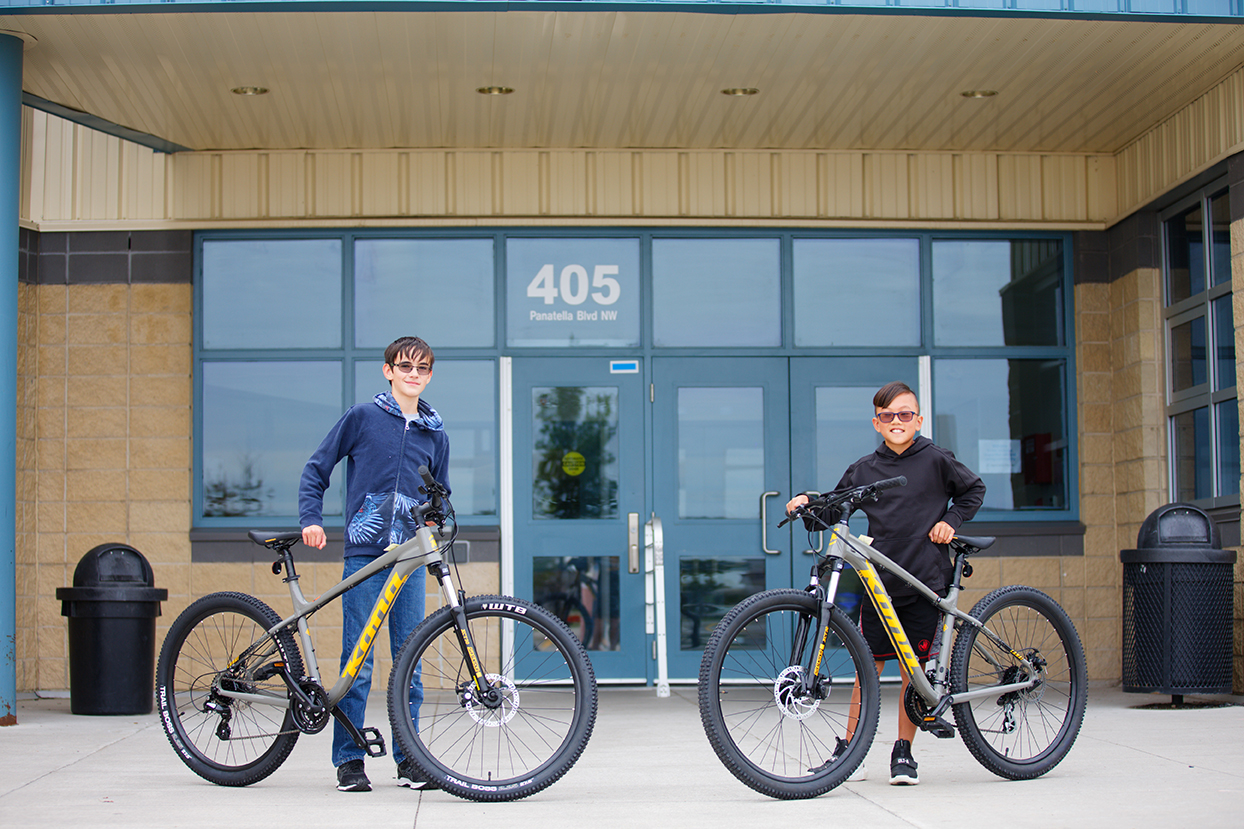 This year, Captain Nichola Goddard School has been working with the Alberta Traffic Safety Fund to tackle and educate members of our school community on traffic safety issues and ways to improve and keep students safe. On Sept. 7 we held a school wide assembly to recognize the individuals who commuted the farthest over the course of May. Two individuals received a grand prize of a brand-new bike in partnership with Bow Cycle and the Alberta Traffic Safety Fund. Keegan W. green commuted a total of 86.4 km for Grades 5 and 6, and Jayden W. commuted a total of 110 km for grades 7, 8 and 9.