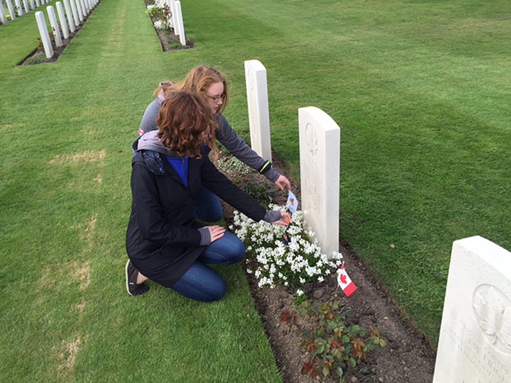 At Groesbeek, the students held a commemorative ceremony laying a wreath and honouring the sacrifices of the over 2,300 Canadian buried soldiers who laid down their lives for the liberation of the Netherlands during World War II.