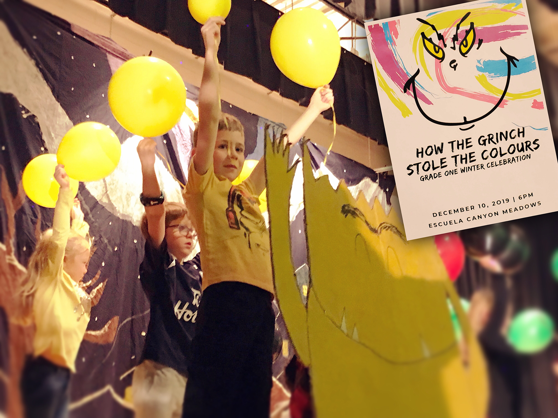 Grade 1 classes have been learning about how colours represent emotions. They created a story combining the traditional seasonal character of the Grinch who stole the colours, with the main character of the book “The Colour Monster” who had his emotions mixed up.