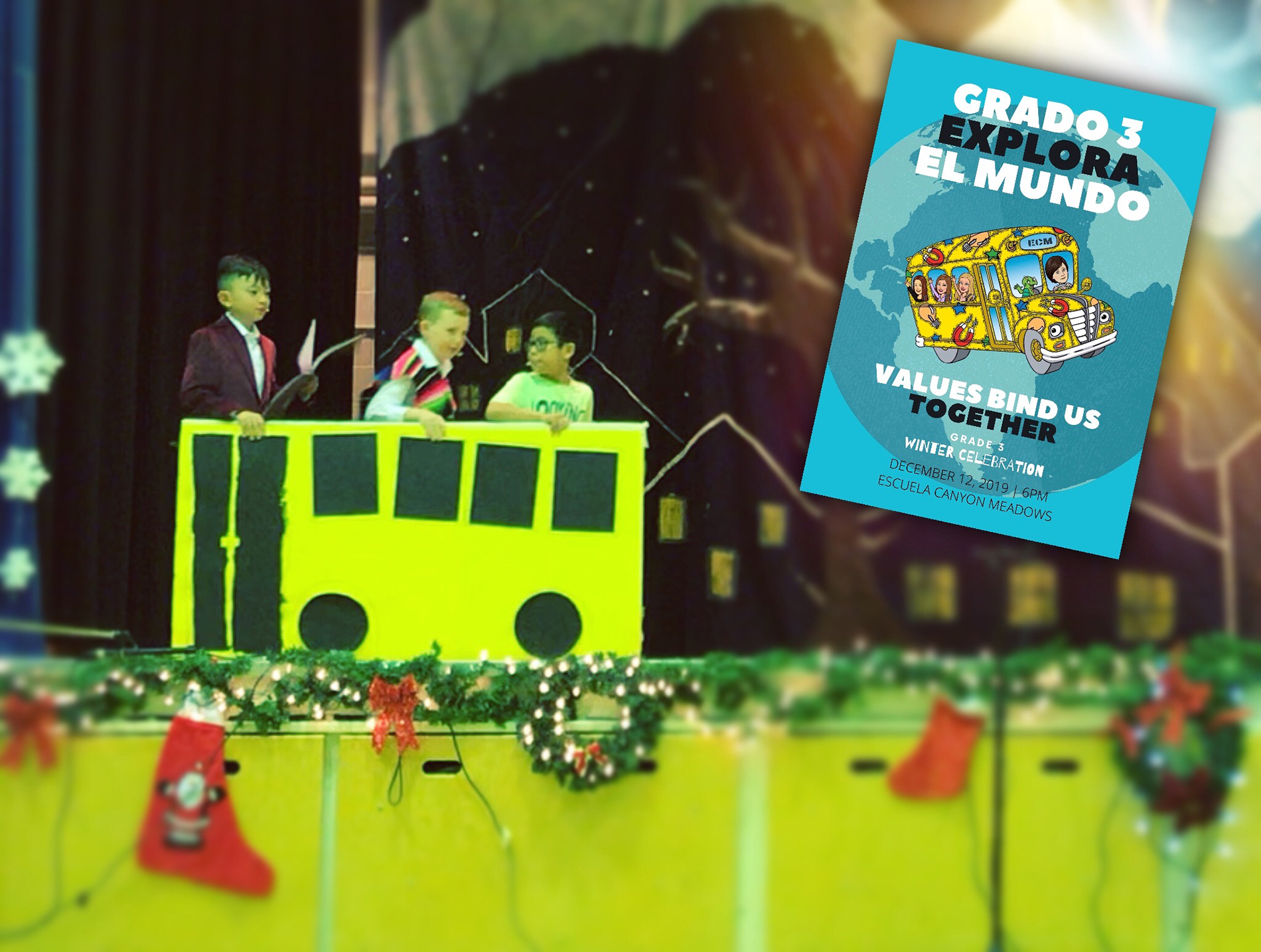 The Grade 3 students shared their travels around the world by travelling on a Magic School Bus. They showcased the essence of the cultures of Peru, Ukraine and India on a journey that uncovered the values that bind us as people of the world.