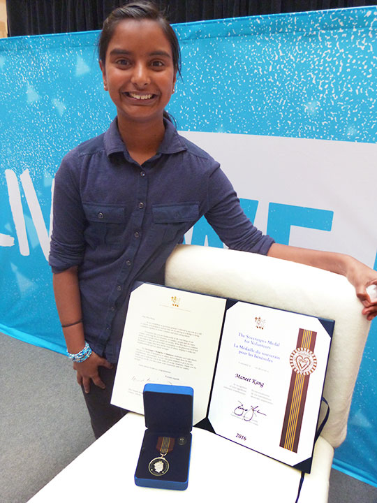 Maneet was nominated by her Grade 6 teacher, Mrs. Braaten. Students nominated had to typify exemplary volunteer initiative to better their local and global community. Ten awards were presented in Calgary and in total 80 were presented across Canada.