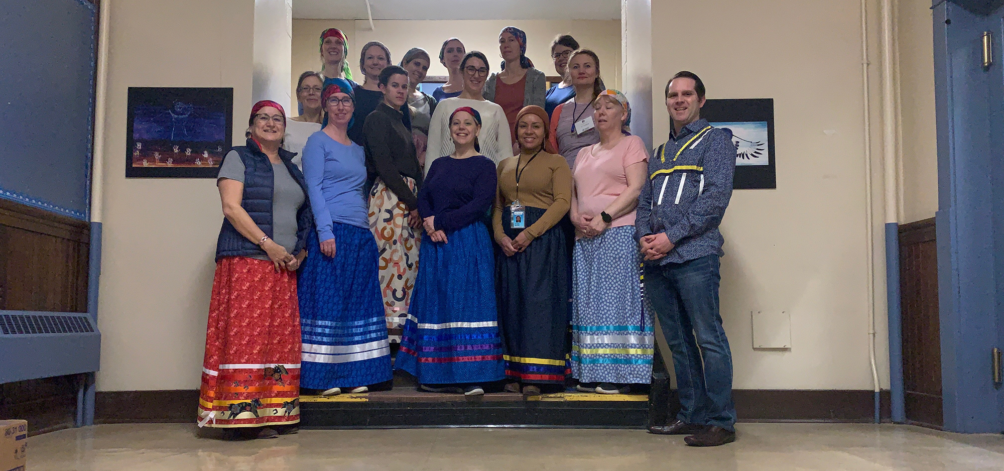 In addition, teachers prepared for the day by participating in teachings related to ribbon skirts with Elder Louisa Fraser and Kim Fraser-Saddleback, which they used to sew ribbon skirts and shirts. Skirts and shirts were then used through preparations for and participation in ceremony.