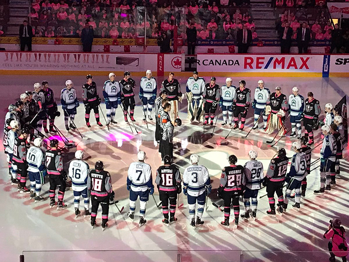 The CBE would like to thank the Calgary Hitmen for their leadership in assisting all Calgary and area students learn about acceptance and bullying prevention a day prior to the Canada-wide Pink Shirt Day. Over 14,000 students and spectators witnessed a great event and programming, including receiving their very own pink shirt for the following day. Attending the event from the CBE were more than 5,500 students, teachers and volunteers from 35 schools. The Hitmen’s “Be Brave” day was one of many of many tasks and activities designed to foster safe, caring, and inclusive school communities throughout the CBE.