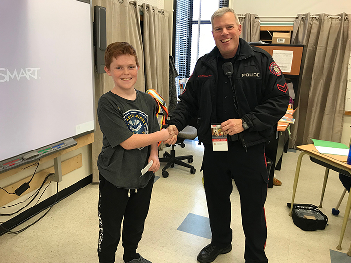 A Grade 6 patrol lieutenant from Earl Grey School was recently presented with a Calgary Police Service “positive ticket” for preventing a young student from running into traffic.