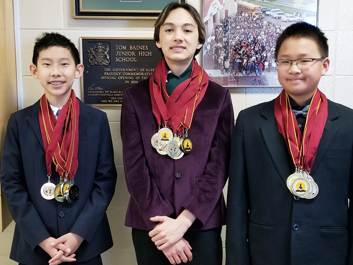 Greg, Brandon and ShiRen proudly display all of their medals.