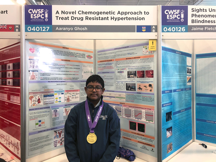 Aranyo competed against 500 other students in Ottawa and received the Gold Medal for Excellence Award, an honour that he alone won amongst the Team Alberta students. Aranyo thanks his mentor, Dr. Argit Roy. Dr. Roy works at the University of Calgary and has mentored Aranyo for past two years. Aranyo’s dream and passion is to pursue a career in Health Sciences.