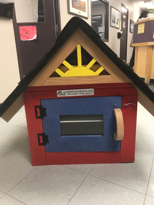 Students raised money by holding a gently used book sale to raise funds to register and pay for the building materials of the libraries, designed the plans and then joined forces with their Grade 9 Reading Buddies from H.D. Cartwright School and their shop teacher to build the Little Libraries.