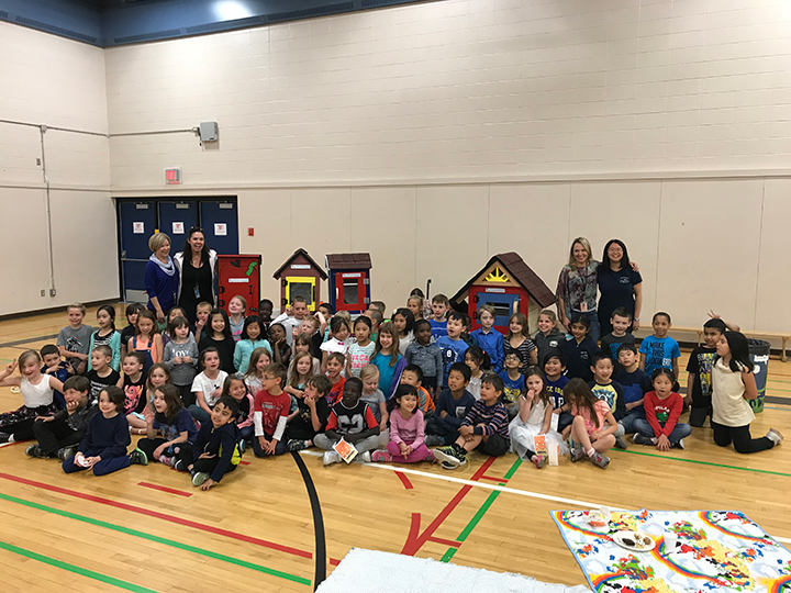 Students were asked to consider what their contributions to the community could be. Working together, children between the ages of 6-8 agreed that the residents of West Dalhousie should have access to books and an opportunity to share their favourite books with one another. The four Grade 1 and 2 classes agreed to design, build and install four new ‘Little Free Libraries’ in the community, with the help of their Grade 9 reading buddies at H.D. Cartwright School.