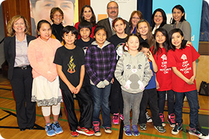 Calgary Board of Education Trustees join Infrastructure Minister Ric McIver and students from Piitoayis Family School at the announcement.