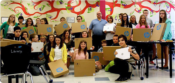 Willow Park parent Jason Walters heard the call, and secured a grant through his workplace at Hewlett Packard to buy 24 new Google Chromebooks as part of a pilot for his daughter’s Grade 7 class. Chromebooks are inexpensive laptops that are designed to be used primarily using applications and data available online. The pilot was so successful that the school’s parent association and teacher technology team applied to the Alberta Community Improvement Initiative to secure additional resources.