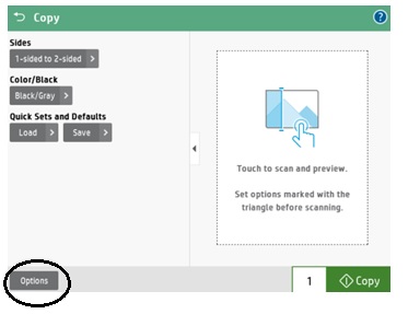 This screen will appear. Confirm your copy preferences or click the Options button for more copy settings.