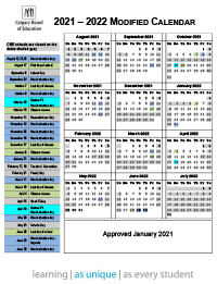 CBE's instructional calendar establishes a common first and last day of classes for all schools, as well as 10, system-wide non-instruction days for schools to schedule parent-teacher conferences, professional development and organizational days.
